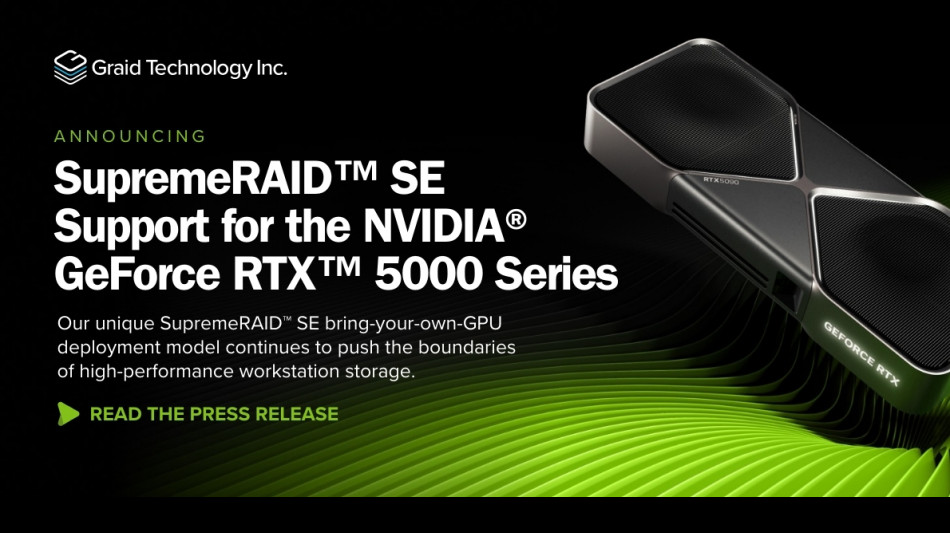 "With SupremeRAID™ SE, we're continuing to redefine what's possible for workstation RAID," said Leander Yu, President and CEO at Graid Technology. "By expanding support to the entire NVIDIA GeForce RTX 5000 series, we're giving professionals even greater flexibility to harness their GPU's power for extreme data performance - whether for AI, content creation or other demanding workloads."