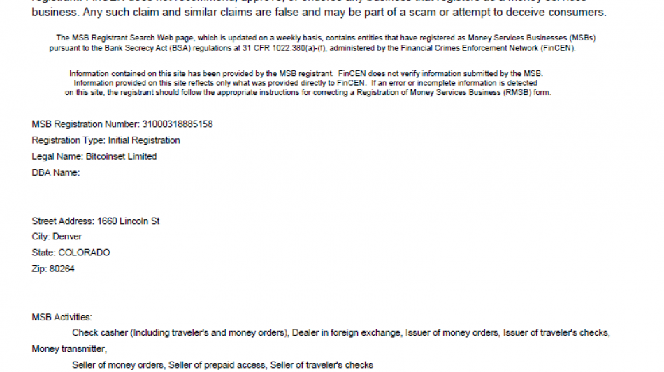 Company Name: Bitcoinset