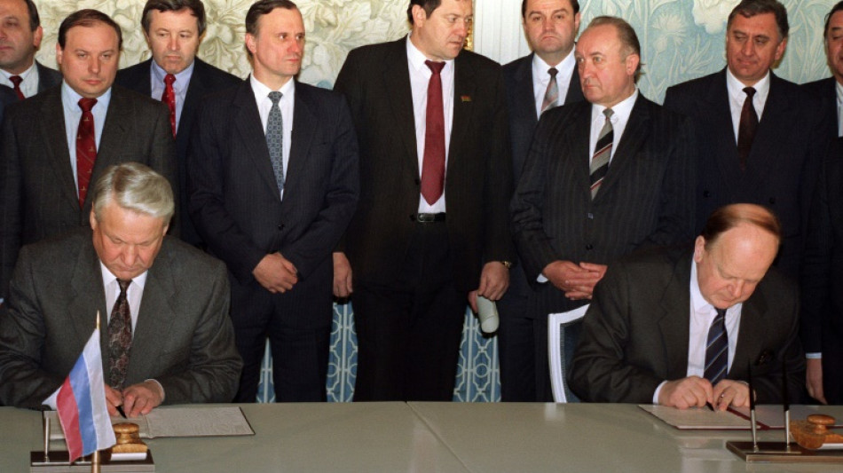 El 8 de diciembre de 1991, los presidentes de Rusia, de Bielorrusia y de Ucrania, Boris Yeltsin, Stanislav Shushkévich y Leonid Kravchuk, firmaron un tratado que organizaba la disolución de la URSS, forzando la dimisión de su último líder, Mijaíl Gorbachov, poco después, y firmando así la sentencia de muerte de la potencia soviética.